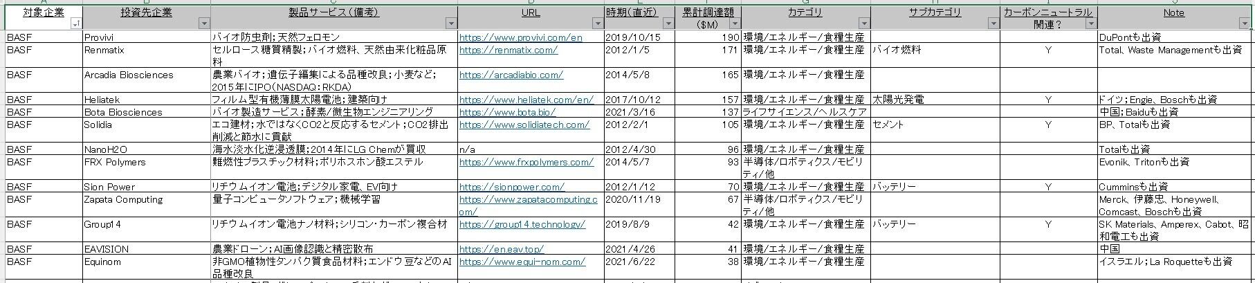 問題意識:下記の対象企業について、どのようなベンチャー企業に投資実績があるか