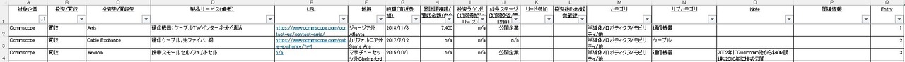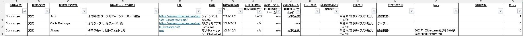 「電子部品/コネクタ企業によるM&AおよびCVC投資」のExcelリストです。